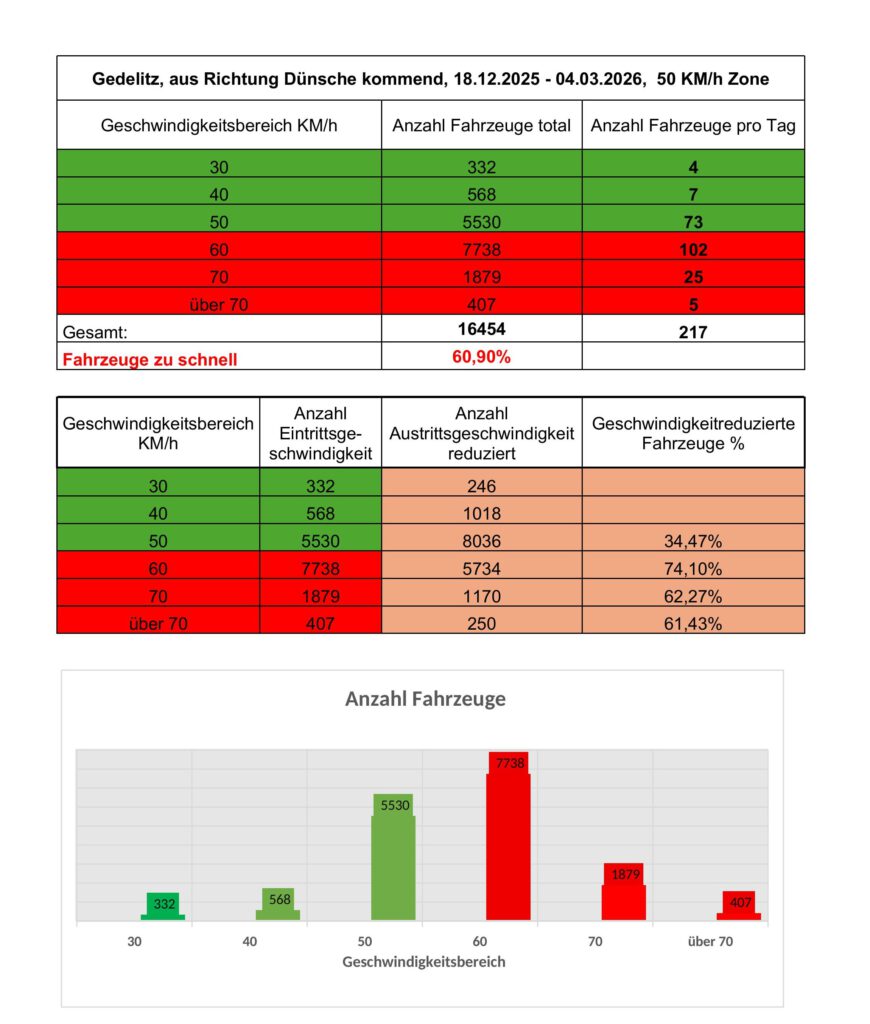 Hier die Auswertung für den Standort Pannecke, Richtung Dünsche: