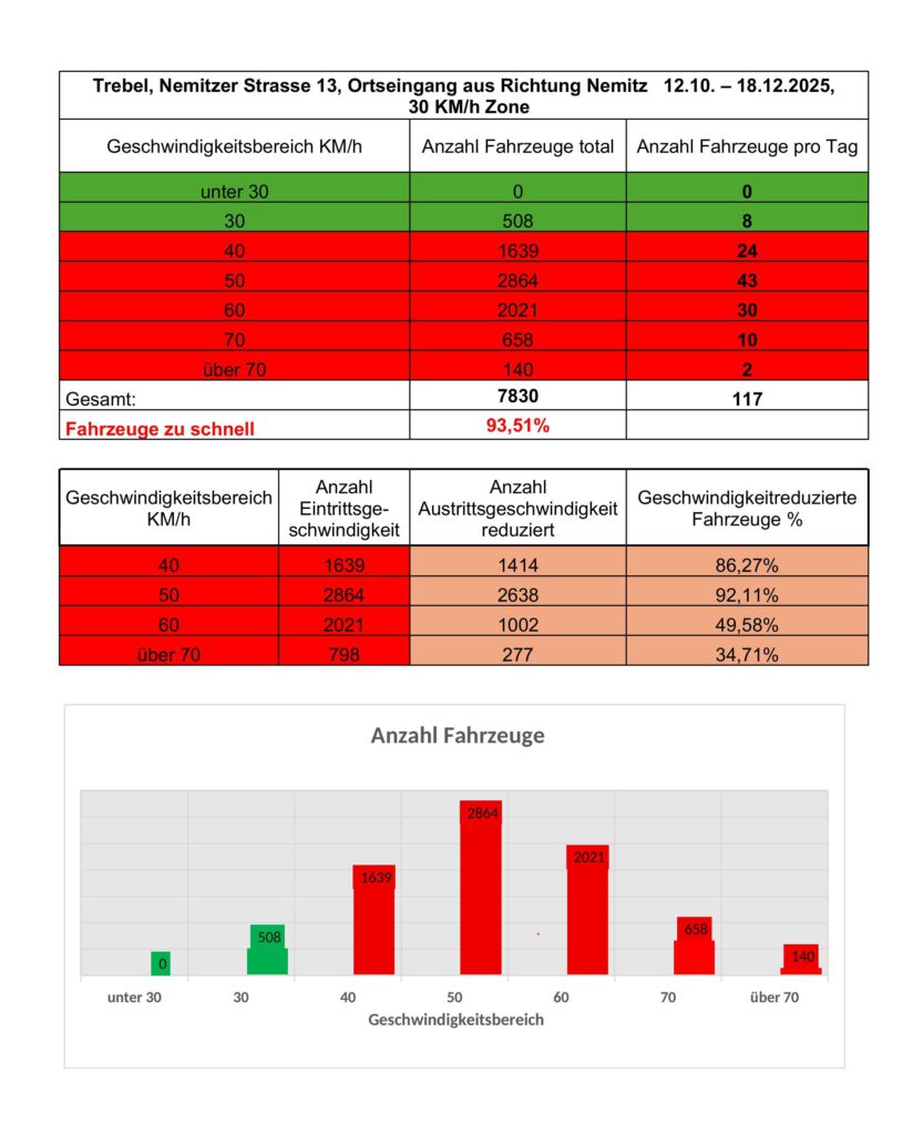 Hier die Auswertung für den Standort Trebel, in der Hauptstraße Richtung Tobringen: